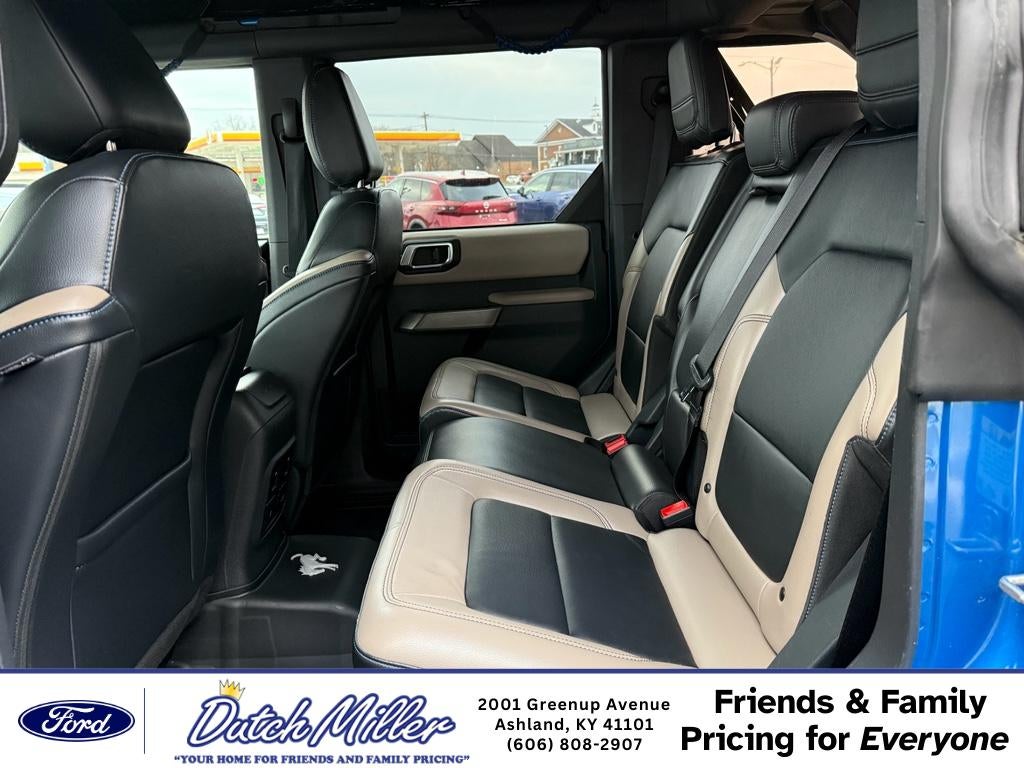Discover adventure with this 2021 Ford Bronco Advanced Wildtrak, located in Ashland, KY — a rugged, stylish SUV with only 30,086 miles and the best price around. Powered by a responsive V6 2.7L gasoline engine and AWD, this Ford Bronco delivers confident performance on highways and unbeaten trails alike. Its striking presence pairs off-road capability with upscale comfort for drivers who demand versatility. Step inside to find premium leather seats that cradle you on long drives and cold mornings. The heated steering wheel adds cozy convenience when temperatures drop, while Remote Start ensures a warm, ready cabin before you step outside. Seamless smartphone integration comes standard with Apple CarPlay, keeping navigation, music, and calls at your fingertips for a safer, connected ride. Safety features include Cross-Traffic Alert to help you back out of crowded spots with confidence, plus advanced systems that enhance everyday peace of mind. The Advanced Wildtrak trim brings thoughtful upgrades and durable finishes to support both urban errands and weekend adventures. This Ford Bronco combines low mileage, potent V6 power, AWD capability, and premium tech for a compelling value — and it's priced to move. If you're in Ashland, KY or nearby, don't miss this opportunity to own a capable, comfortable Ford Bronco with top features and the best price available. Schedule a viewing or test drive today and experience why this Ford Bronco stands out.