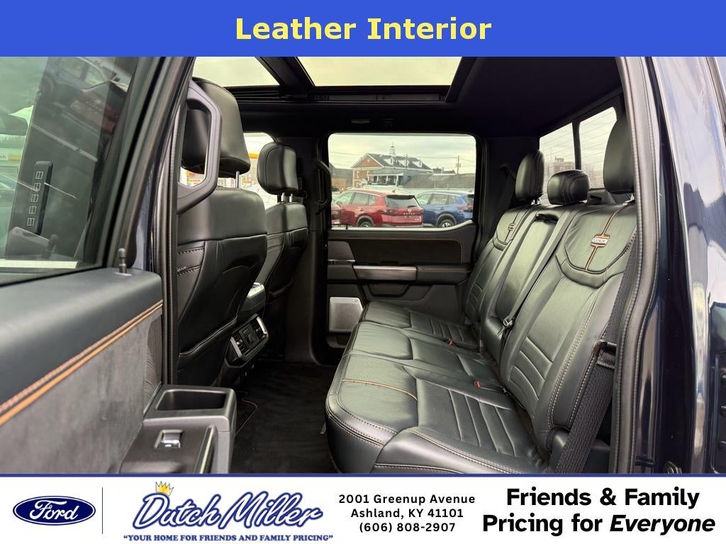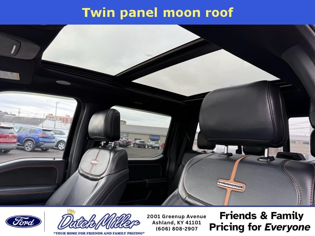 Tow Technology Package: 360 Degree Camera; Pro Trailer Backup Assist. Equipment Group 701A High: 20" Polished Aluminum Wheels; 275/60R20 BSW AT Tires; B&O Unleashed Sound System by Bang & Olufsen Radio; Electronic 10-Speed Automatic Transmission; Unique Multi-Contour Leather Bucket Seats; 7. 050 lbs Payload Package GVWR; Power Tailgate. Ford Co-Pilot360 Active 2.0 Package: BlueCruise Hands-Free Driving; Active Park Assist 2.0. Twin Panel Moonroof. 360 Degree Camera. Power Tailgate. Tough Bed Spray-In Bedliner. Electronic Locking with 3.55 Axle Ratio. Extended Range 36 Gallon Fuel Tank. **Equipment listed is based on original vehicle build and subject to change. Please confirm the accuracy of the included equipment by calling the dealer prior to purchase.**