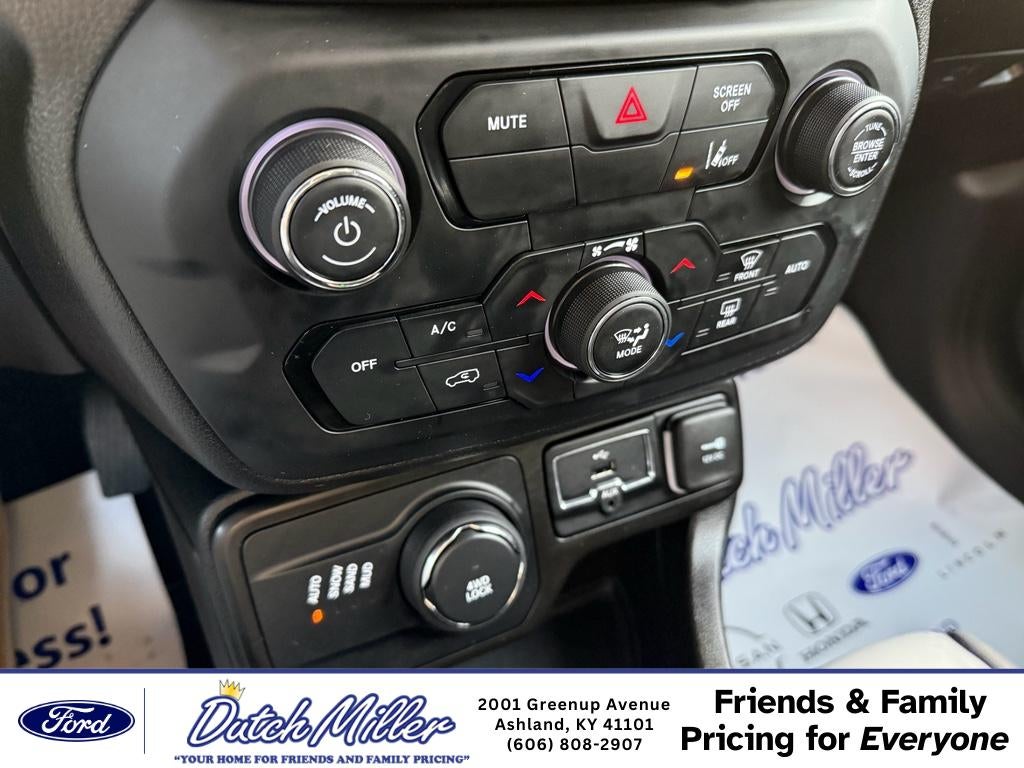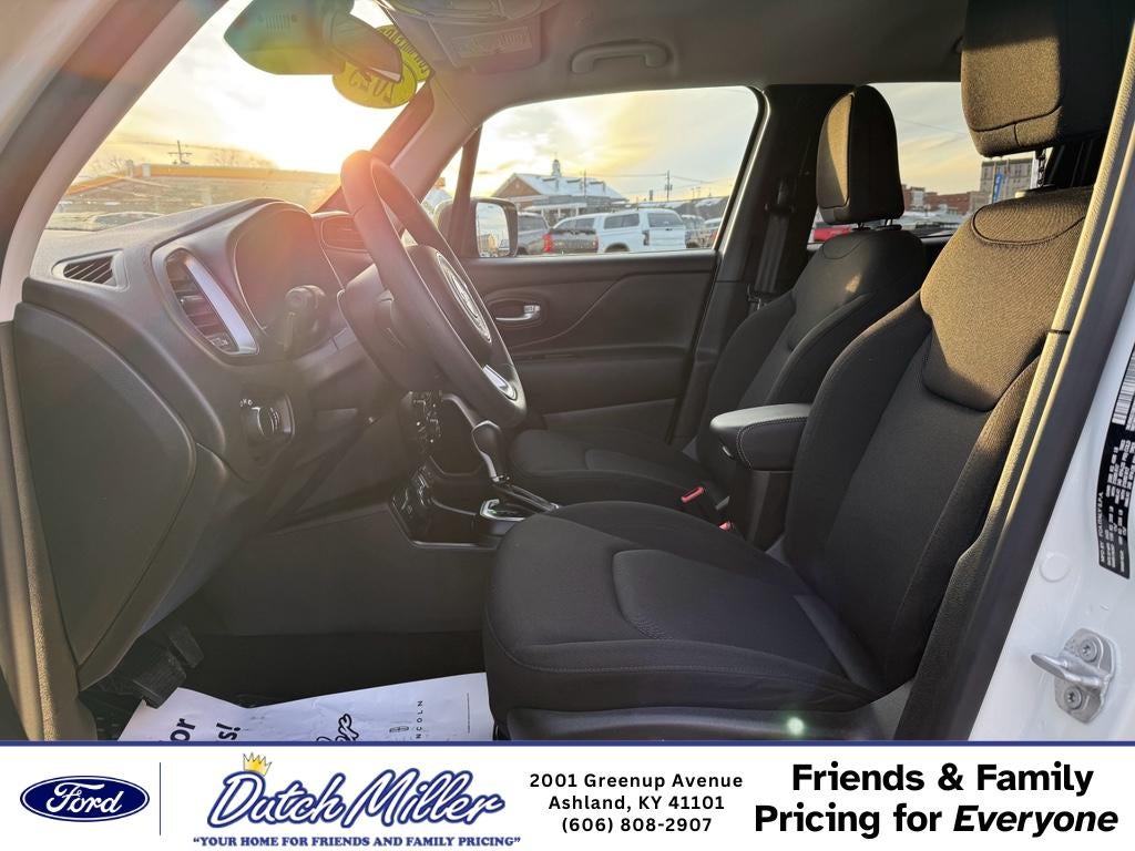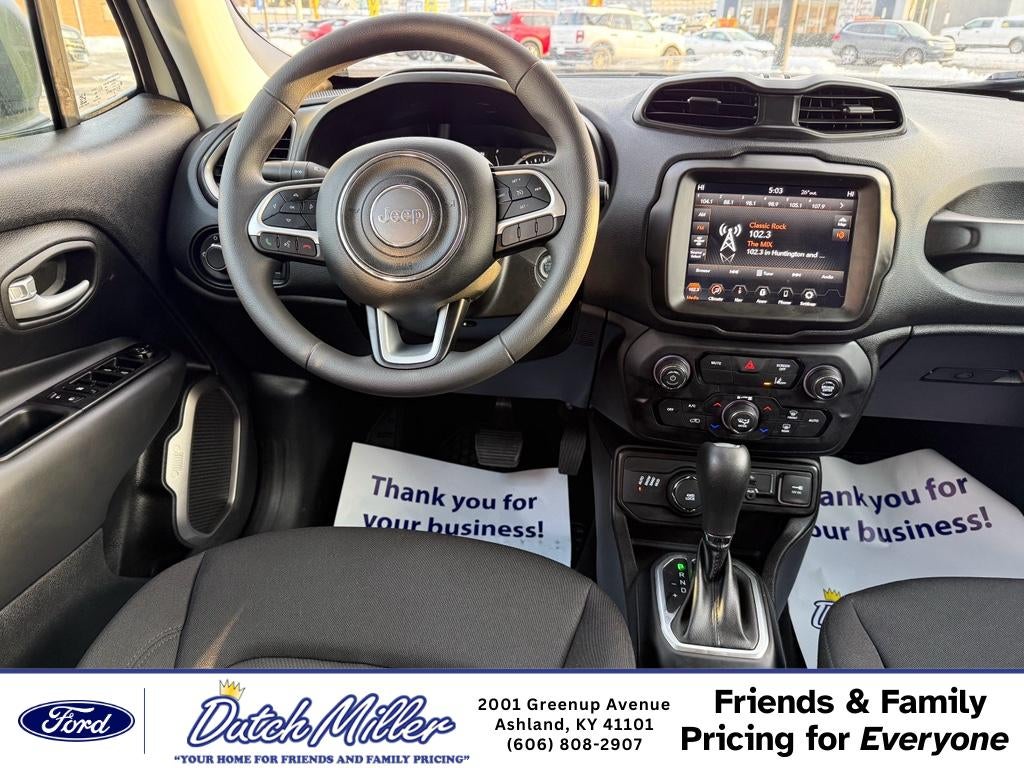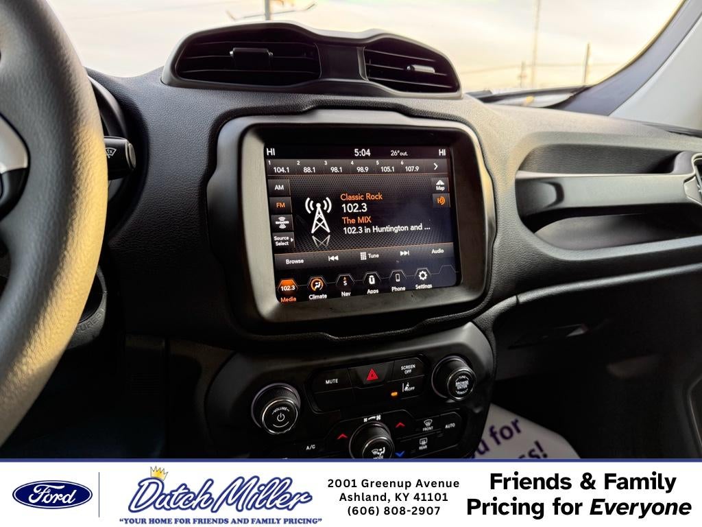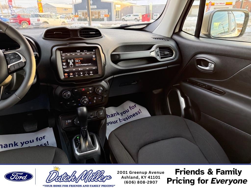 2023 Jeep Renegade Latitude — low-mileage gem in Ashland KY! This 4WD compact SUV pairs a fuel-efficient 4-cylinder 1.3L gasoline engine with smart capability and modern tech. With only 5,000 miles and CARFAX 1-Owner history, this Jeep Renegade delivers nearly-new reliability and exceptional value. Inside, enjoy seamless smartphone integration with Apple CarPlay and Android Auto, plus XM Radio for entertainment on every drive. Safety features include Forward Collision Warning to help keep you and your passengers secure on city streets and rural roads alike. The Latitude trim balances comfort and utility with thoughtful conveniences and a driver-focused layout. This Jeep Renegade is perfect for daily commutes, weekend escapes, and navigating changing weather thanks to its confident 4WD system. Low mileage means longer life and lower immediate maintenance costs compared to similar pre-owned SUVs. Priced to move — you'll find the best price on this 2023 Jeep Renegade in the area, making it an outstanding opportunity for budget-conscious shoppers who still want modern features and peace of mind. Located in Ashland KY, this Jeep Renegade is ready for test drives and quick delivery. CARFAX 1-Owner verification is available for review. If you want an economical, feature-packed 4WD crossover with proven safety systems and near-new condition, this 2023 Jeep Renegade Latitude is an unbeatable choice. Come see it today.